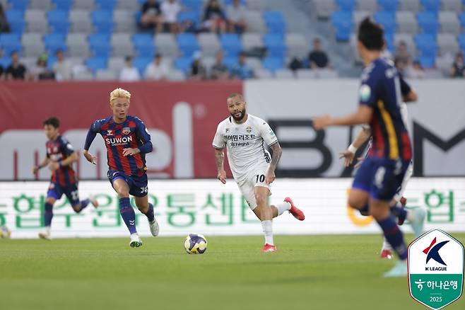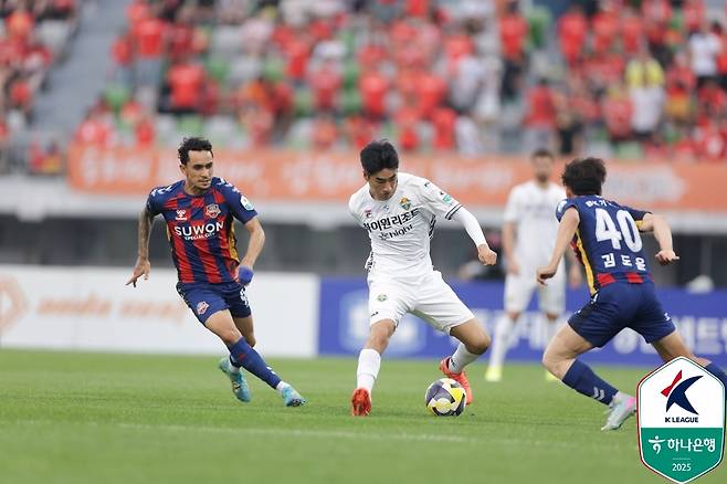 강원은 28일 수원종합운동장에서 열린 수원과의 '하나은행 K리그1 2025' 21라운드 원정 경기에서 후반 추가시간에 터진 김대원의 결승골에 힘입어 2-1 극장승을 거뒀다.