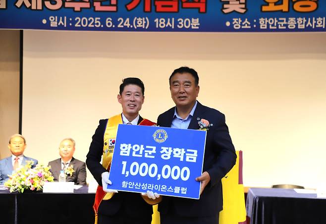 이날 행사에서 함안산성라이온스클럽은 어려운 학생을 위해 써달라며 100만 원을 함안군에 기탁하여 지역사회와 훈훈한 온정을 함께 나눴다.