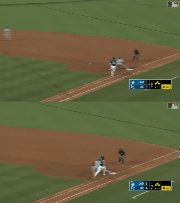 이 수비가 이번 캔자스시티전에서도 다저스를 살렸다. 다저스는 9회 말 마무리 투수로 등판한 태너 스캇이 난조를 보여 1사 만루 위기를 자초했다. 다행히 잭 캐글리온을 평범한 2루수 땅볼로 유도했다. 그런데 공을 받은 유격수 무키 베츠의 1루 송구에 힘이 들어갔다.