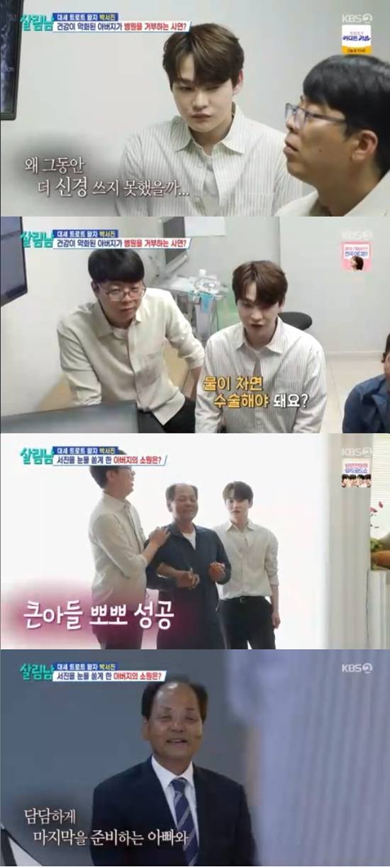 28일 방송된 KBS 2TV '살림하는 남자들 시즌2'에서는 박서진이 아버지의 무릎 상태를 확인하고자 병원을 찾는 모습이 전파를 탔다.