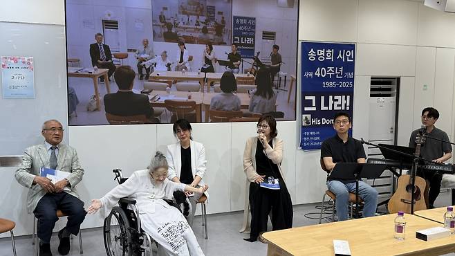 발표회 진행을 맡은 곽 목사는 “나는 아무것도 아니지만 주님은 나의 전부라고 고백하는 시인 송명희의 삶은 하나님이 한 사람을 통해 보여주셨던 은혜의 역사”라며 “그의 약함을 모두 덮고도 남을 그리스도의 사랑이 이 땅에 더 널리 퍼져나가길 소망한다”고 전했다.
