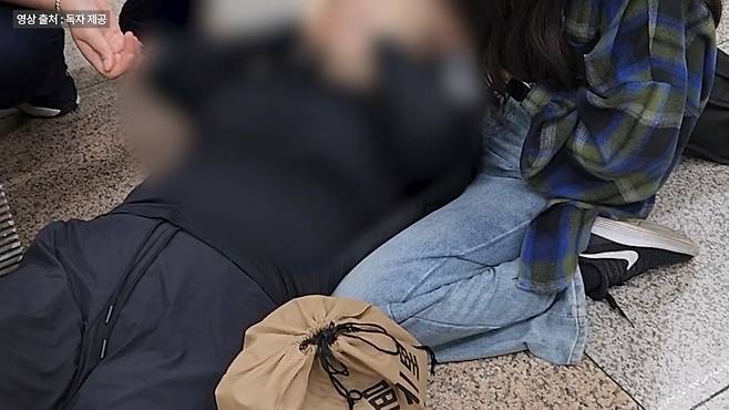 “이렇게 계시면 안 될 것 같다, 내려서 종 상황을 보자고 그랬더니 제 옆에 계셨던 여자분께서 도와주셔 가지고 동대문역사공원(역)에서 부축을 하고 내렸고, 앉아 계시면 회복이 안되니까 눕혀드렸어요”