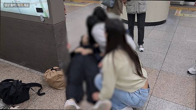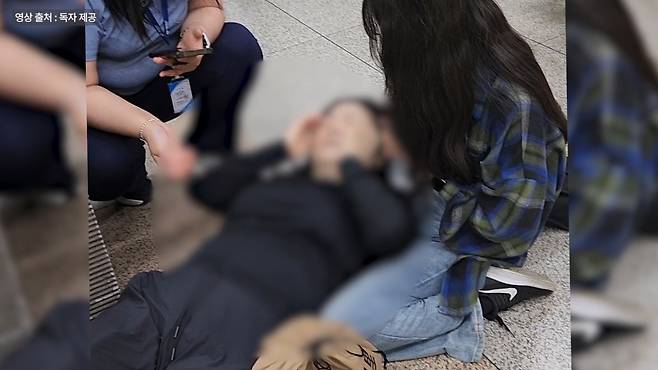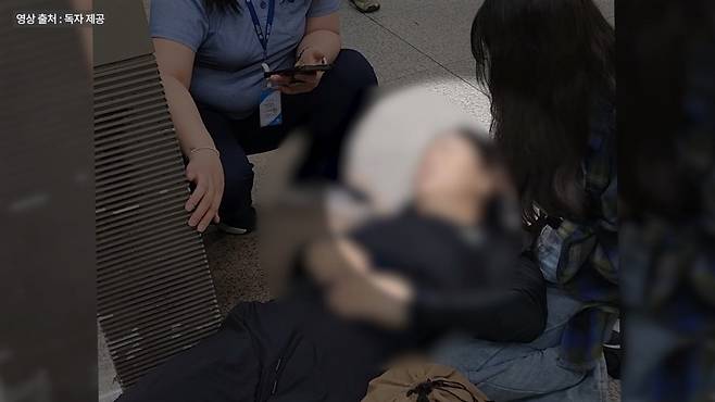 그런 상황에서 송이씨는 조금도 망설이지 않고 출근 복장 그대로 승강장에 주저앉아서 자기 무릎으로 여성의 머리를 받치고는 여성을 바닥에 눕혔습니다. 그 사이 도와주던 다른 승객이 119구조대에 신고를 했고, 역무원에게도 상황이 전달됐습니다.