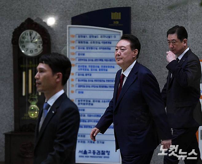윤 전 대통령은 전날 출석 때와 마찬가지로 서울고검 1층 현관을 통해 빠져나갔다.
