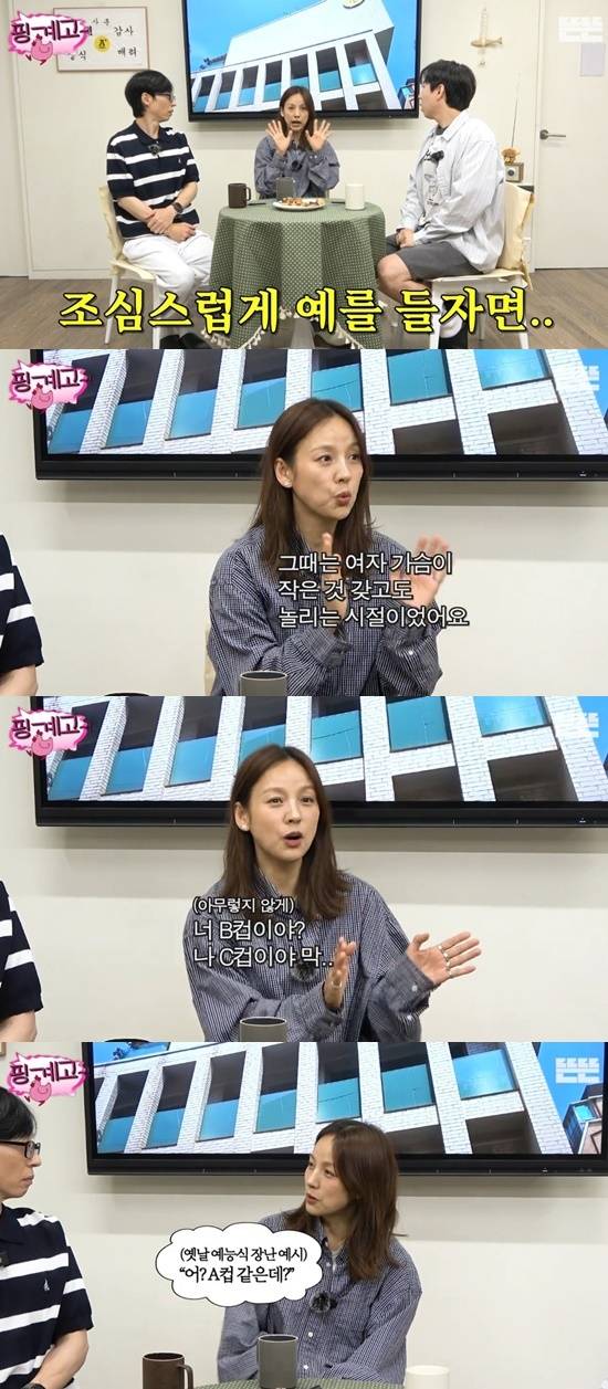 이어 "조심스럽게 예를 들면, 옛날에는 여자 가슴이 작은 것을 갖고도 놀리는 시절이었다. '너 B컵이야? C컵이야?' 막 그랬었다. 그런데 내가 (10년 공백기를 갖고 나서) 어디 가가지고 (옛날 예능처럼) '어? A컵 같은데?' 이런 농담을 하면 어떡하나 싶은 것이다"라며 걱정했다.