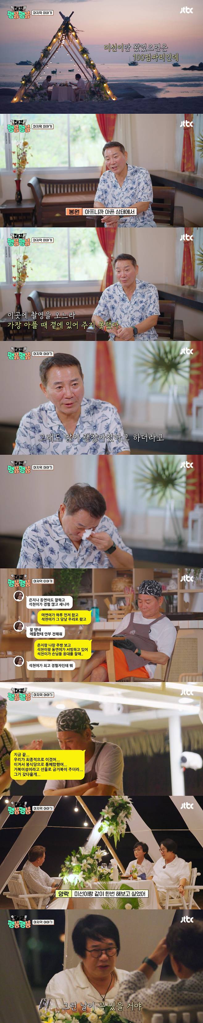 이후 제작진과의 인터뷰에서 이봉원은 "아무래도 같이 오기로 했으니까 기대가 컸었다. 아내가 되게 좋아했을 거다. 근데 아프니까, 아픈 상태에서 가려고 했는데 내가 못 가줬다"며 울먹였다.