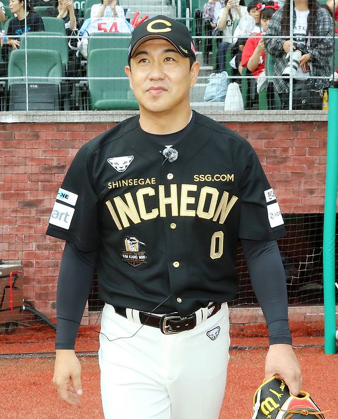 지난 시즌을 끝으로 선수 생활을 마감한 김강민은 이날 은퇴 선수 특별 엔트리로 등록돼 SSG 1번 타자 중견수로 출전했다. 다만 이후 진행된 경기는 뛰지 않았다.