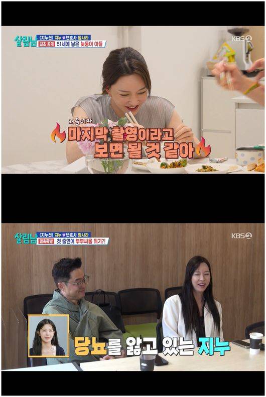 28일 방영된 KBS2TV 예능 '살림남2'에서는 결혼 후 오랜만에 방송에서 모습을 드러낸 지누와 변호사 아내 임사라가 등장했다.