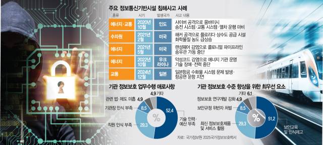 정부가 최근 교통·에너지·상하수도 시설 등 주요 국가 기반시설을 겨냥한 사이버 공격이 거세지고 있다며 이에 대한 철저한 경계를 당부했다. 핵심 인프라가 타격을 받을 경우 사회적 혼란이 불가피한 만큼 보안 지침 준수를 비롯해 각 관련 부처·기관의 자발적 방어 역량 강화를 촉구했다. 전문가들은 각 기관이 보안 지침을 이행하는 데만 머물지 말고 보안 조치를 한층 강화해야 한다고 입을 모았다.