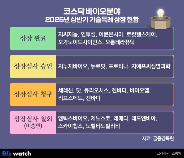 29일 금융감독원 등에 따르면 올 상반기 기술특례방식으로 코스닥에 상장한 바이오기업은 오름테라퓨틱, 오가노이드사이언스, 로킷헬스케어, 이뮨온시아, 인투셀, 지씨지놈 등이다.