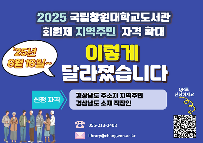 국립창원대학교도서관이 경상남도 전역을 대상으로 ‘특별대출회원’ 자격을 확대 시행하기로 했다. 이는 도민과 지역 직장인의 도서관 이용 편의성을 높이고 지역사회와의 연대·소통을 강화하기 위한 조치다.