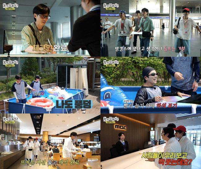 캐리어를 끌고 MBC에 도착한 멤버들은 체크인 카운터로 둔갑한 안내데스크에서 체크인을 하고, 웰컴 드링크까지 제공받자 “생각보다 괜찮네. 호텔 느낌이 나”라며 만족스러워했다. 유재석은 MBC 아나운서였던 아내 나경은의 전 직장 상사와 어색한 만남을 갖는가 하면, 지나가다가 예능 본부장과 마주치는 등 민망한 상황을 맞기도 했다. 호텔 세계관에 푹 빠진 멤버들은 MBC 직원들을 ‘투숙객’으로 부르며 적응해갔다.