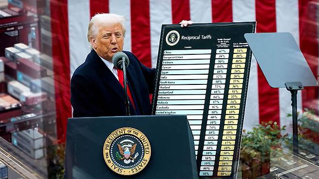한국의 경우 기본관세 10%, 국가별 차등 관세 15% 등 총 25%의 상호관세가 책정됐습니다.