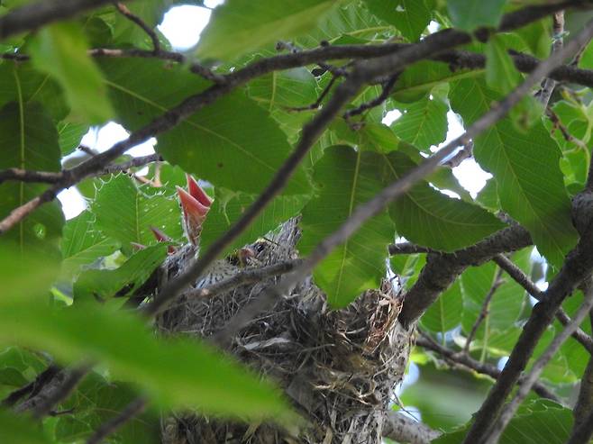 | ▲ 둥지에서 입을 벌리며 먹이를 기다리는 새끼들 |
