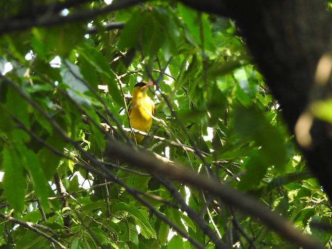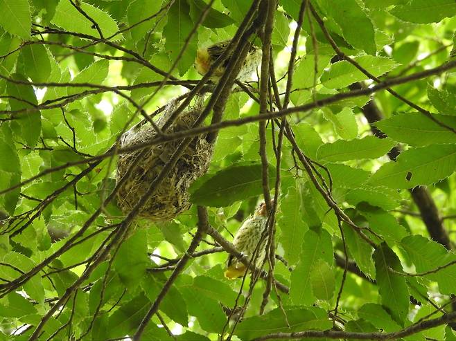 | ▲ 새끼를 키워내고 있는 꾀꼬리의 모습 |