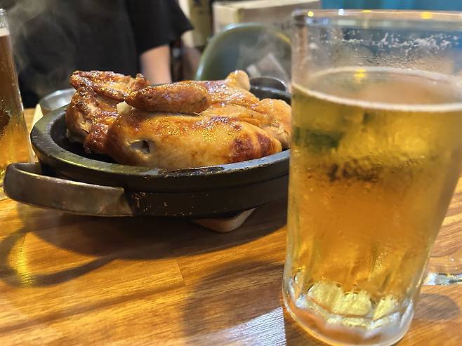 | ▲ 해방촌닭의 전기구이와 맥주 |