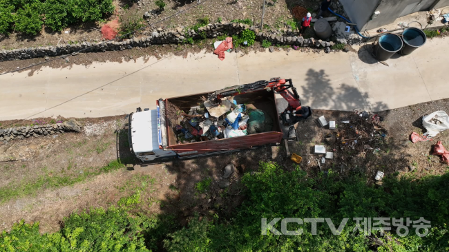 야산이나 농로 등에 몰래 버려진 폐기물은 올해 제주시에서만 590여 톤으로 확인됐는데, 각 읍면동에서 작업에 나서 최근까지 350톤 넘게 수거했습니다.