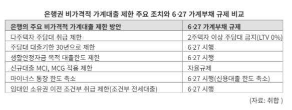 수도권 주담대 6억원 제한은 대표적인 가격 규제다. 주담대 6억원으로는 '영끌(영혼까지 끌어모아 대출)'해도 상급지 갈아타기는 사실상 불가능해져 가계대출 급증에 제동을 걸 수 있을 것이라는 전망이 나온다. 한 시중은행 고위관계자는 "과거 고가주택 대출 금지는 물건 자체에 제한을 둔 것이라 현실적으로 체감하는 규제 강도는 이번이 더 강할 것"이라면서 "이실수요자에게 피해가 생기지 않도록 해야 하는데 어떻게 선별해야 할 지 고민"이라고 전했다.