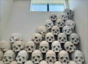 론 뮤익의 거대한 해골 100개로 구성된 설치 작품 ‘매스’에서 해골은 개별적인 정체성이 아니라 군집이라는 점에서 강렬하다. 고요하고, 중립적이며, 심지어는 평화로워 보였다. 우리는 모두 언젠가 이 형태로 남게 되리라는, 너무도 단순한 사실 앞에서 한동안 움직이지 못했다. - 법학자·인하대 로스쿨 교수 김현진의 ‘Legally Muse’