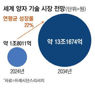 유엔은 양자 기술의 근간이 된 양자역학 탄생 100주년을 기념하는 한편 이 같은 가능성에 주목해 올해를 '양자의 해'로도 선언했다. 시장조사 업체 '프레시던스리서치'는 지난해 세계 양자 기술 시장 규모를 13억2000만달러(약 1조8011억원)로 추산하며 2034년까지 연평균 성장률 22%를 기록하면서 96억5000만달러(약13조1674억원)로 성장할 것이라고 전망했다.
