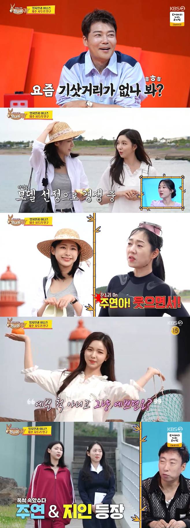 제주어를 해녀들의 설명으로 해 맞히는 게임. 홍주연이 낸 문제에 정답은 바로 전현무였다. 김숙은 "주연이가 문제로 전현무를 냈다. 현무를 엄청 챙긴다"라 했고 박명수도 "남편 챙기는 거 봐라"라 놀렸다. 전현무는 "요즘 기삿거리가 많이 없나봐? 나 한 번 낚으려고"라며 웃음을 터트렸다.