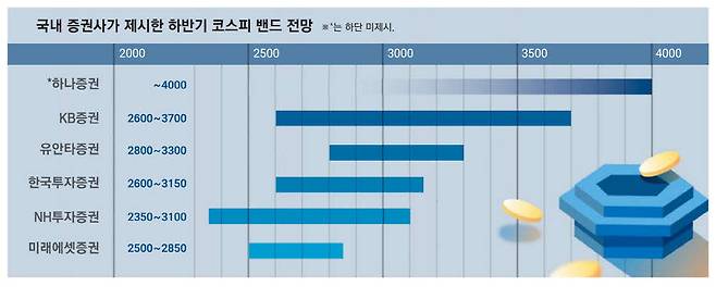 다만 증권사들은 하반기 미국의 관세 부과나 연준의 금리 인하 지연 등 일시적 증시 하락을 경계해야 한다는 우려도 내놨다.