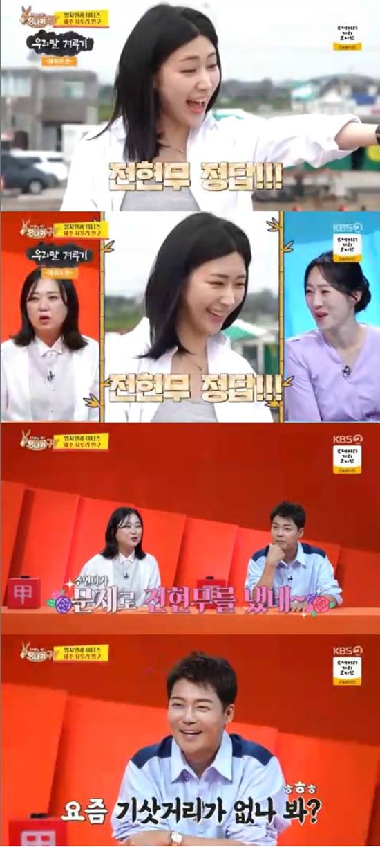 29일 방송된 KBS 2TV '사장님 귀는 당나귀 귀'에서는 엄지인이 후배들과 함께 제주도로 향하는 모습이 전파를 탔다.