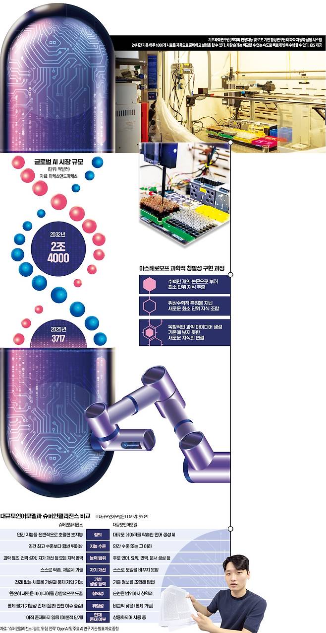 미국 대형 벤처캐피털(VC) 플래그십 파이어니어링이 세운 라일라사이언시스는 생명과학부터 소재과학까지 아우르는 자동화 실험실을 구축하고 있다. 올해 초 시드 투자만으로 3000억원을 유치한 이 기업은 생물학적 가설을 AI가 스스로 세우고 실험 설계 및 시뮬레이션으로 연결하는 완전 자동화 연구 플랫폼 개발을 목표로 삼았다. 차상균 서울대 데이터사이언스대학원장은 “슈퍼인텔리전스는 불이나 바퀴처럼 인류 문명을 질적으로 도약시킬 새로운 도구가 될 수 있다”며 “기업·국가 간 기초과학 및 기술 격차를 지금보다 훨씬 빠른 속도로 벌릴 것”이라고 전망했다.
