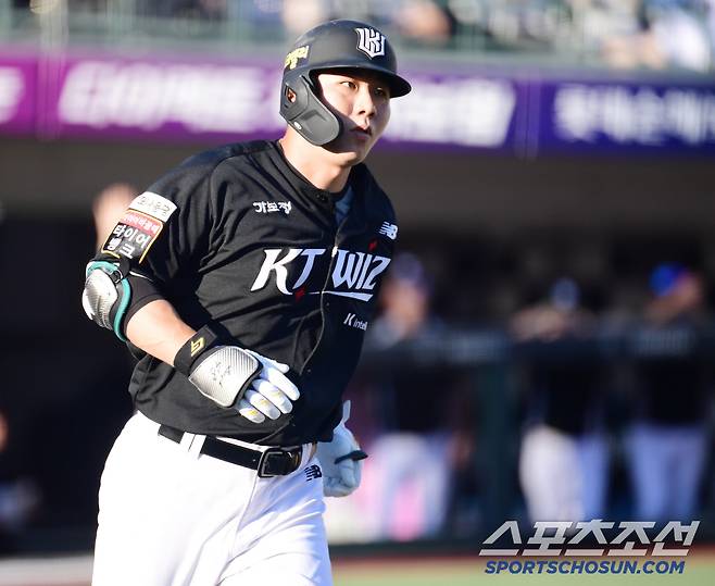 29일 부산 사직구장에서 열린 롯데와 KT의 경기. 4회 KT 이정훈이 롯데 박세웅을 상대로 동점 솔로홈런을 날렸다. 타구를 바라보는 이정훈. 부산=송정헌 기자songs@sportschosun.com/2025.06.29/