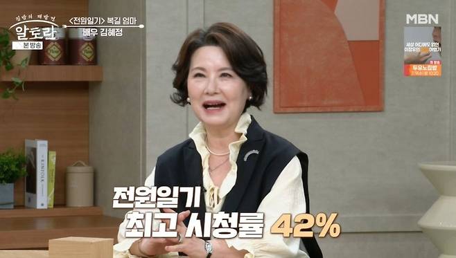 이날 드라마 '전원일기'에서 복길 엄마 역할을 맡았던 김혜정이 등장했다. 이연복은 "우리 땐 '전원일기' 안 본 사람이 없었다. 안 보면 다음 날 대화가 안 됐다. 시청률도 엄청났다"라고 했고, 김혜정은 "최고 시청률이 42%였다. '전원일기' 방영 날은 도로가 한산할 정도로 어마어마한 시청률이었다"라고 밝혔다.