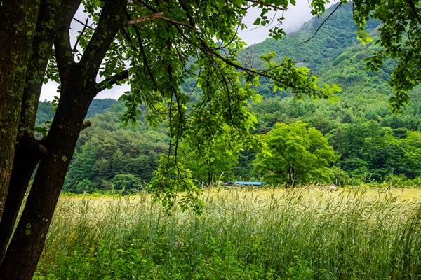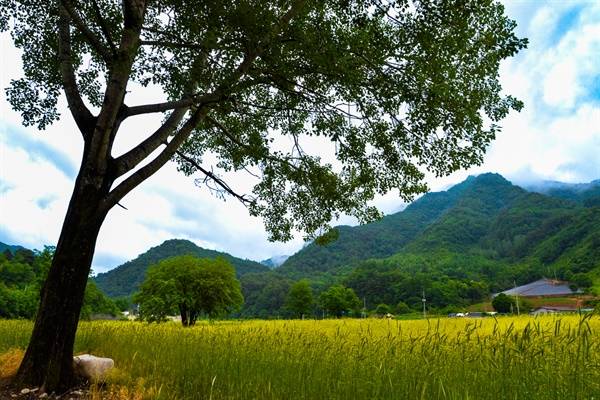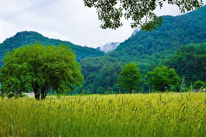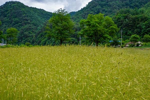 이러한 아쉬움을 달래기라도 하듯이 덕우리에서 자동차로 8분 거리, 정선군 남면 낙동리마을 지장천 속섬 밭에는 아직도 푸릇한 청보리가 파도같은 물결을 이루고 있다.