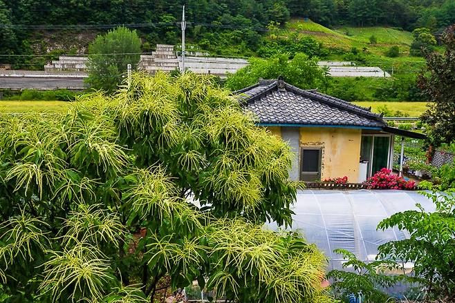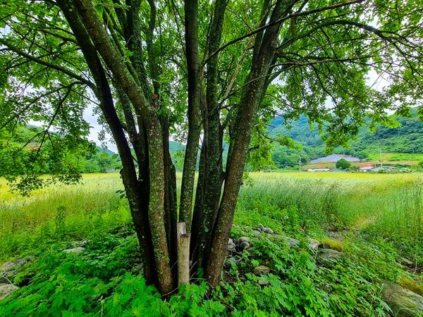 밤꽃도 활짝 피었고 매실도 청매실이다. 이 마을에는 특히 집집마다 앵두나무가 많다. 앵두가 빨갛게 익어 바닥에 떨어진다. 아주까리도 있고 보리수열매와 호두나무도 보인다.