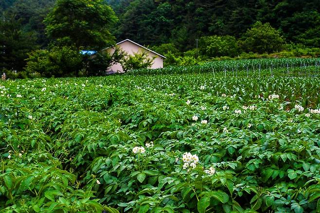 | ▲ 선평마을 마실 나들이 감자밭 감자꽃도 어여쁘다 |