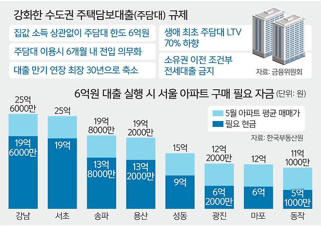 당장 28일부터 수도권에서 집을 살 때 6억원 초과 대출이 금지됐고 수도권 다주택자의 신규 주담대는 불가능해졌다. 추가 주택 구입 목적뿐만 아니라 생활안정자금 목적 주담대도 받을 수 없다.