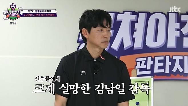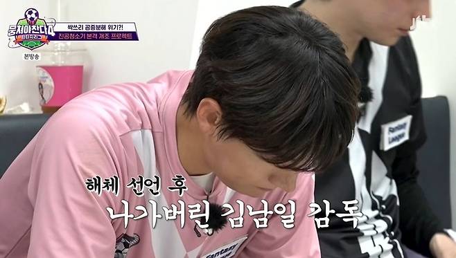 이날 이동국 감독의 라이온하츠FC와 대결에서 패한 후 심각한 분위기에 휩싸인 김남일 감독의 싹쓰리UTD. 경기 내내 분노했던 김남일은 "내가 할 얘기가 없다"라며 선수들에게 크게 실망했다.