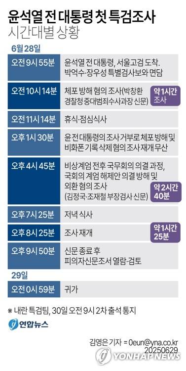 [그래픽] 윤석열 전 대통령 첫 특검조사 시간대별 상황