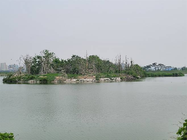 | ▲ 축만제 인공섬 민물가마우지 서식지 |