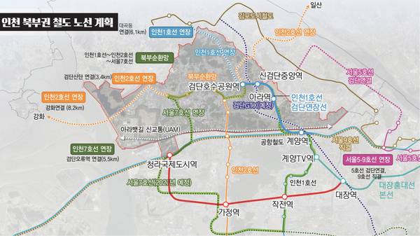 서울 홍대입구역에서 부천 대장신도시를 연결하는 대장홍대선을 계양테크노밸리(계양TV)와 청라국제도시로 각각 연장하는 사업도 북부권 광역철도망 구축 사업의 핵심으로 꼽힌다.