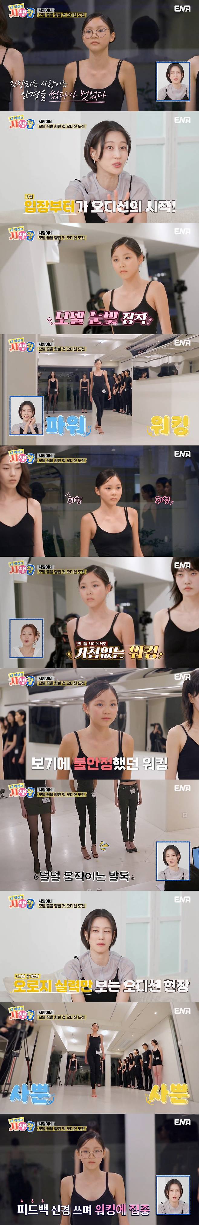 워킹 피드백 시간. 조우직 디자이너는 추사랑을 향해 "앞에 섰을 때부터 다른 모델 분이랑 비교했을 때 너무 부산스러웠던 것도 있다. 근데 또 발목도 계속 움직이고 바지도 자꾸 꼼지락꼼지락한다"며 "다른 모델분들이 신경 쓰는 것 만큼 신경을 써달라"고 했다. 이에 이현이는 "오디션장에서는 어리고 나이 많은 게 전혀 중요하지 않다. 진짜 냉정하게 심사하시는 것 같다"고 했다.