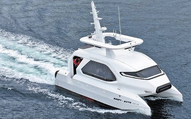 삼성중공업이 만든 이 배의 이름은 ‘시프트 오토(Shift Auto)’. 자율 주행 차량이 도로를 누비듯, 바다 위에서도 무인(無人) 자율 운항 선박이 대세가 될 것이라 보고 삼성이 지난 2019년부터 기술 개발에 착수해 작년 11월 선보인 첨단 선박이다. 출발지와 목적지만 찍어주면 알아서 최적의 항로를 설정하고, 장애물을 회피하며, 목적지까지 항해하는 완전 무인 선박이다. 한마디로 ‘바다 위의 테슬라’인 셈이다. 삼성중공업의 조선 기술과 첨단 IT(정보기술)가 집약된 SAS(Samsung Autonomous Ship)라는 자율 운항 시스템을 탑재했다.
