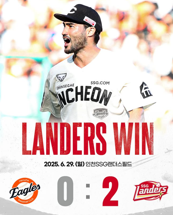 지난 29일 인천 SSG랜더스필드에서 열린 2025 신한 SOL 뱅크 KBO리그 한화와의 경기에서 SSG는 2-0으로 승리했다.