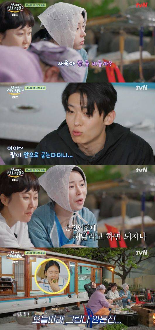 29일 방송된 tvN 예능 '언니네 산지직송2' 12회에서는 갓 수확 후 솥뚜껑삼겹살을 준비하는 염정아, 박준면, 임지연, 덱스, 이재욱의 모습이 그려졌다.