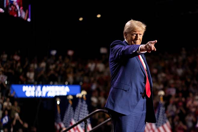 | ▲ 2024년 10월 24일(현지시간) 미국 공화당 대선 후보인 도널드 트럼프 전 대통령이 애리조나주 템피의 뮬렛 아레나에서 유세를 하고 있다. |