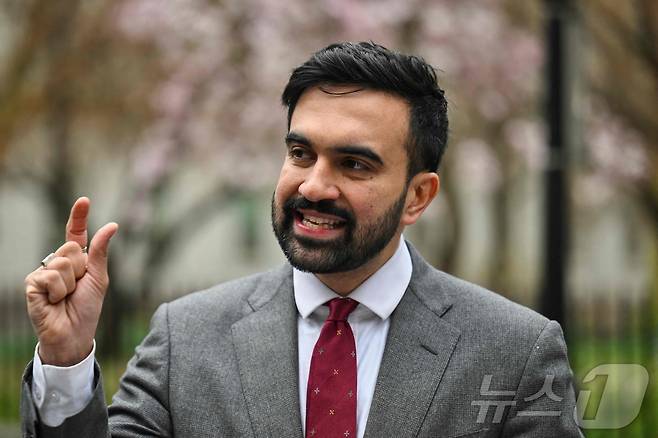 (뉴욕 AFP=뉴스1) 강민경 기자 = 민주당 뉴욕시장 후보인 조란 맘다니가 지난 4월 16일 뉴욕시에서 선거 운동을 하고 있다. 2025.4.16