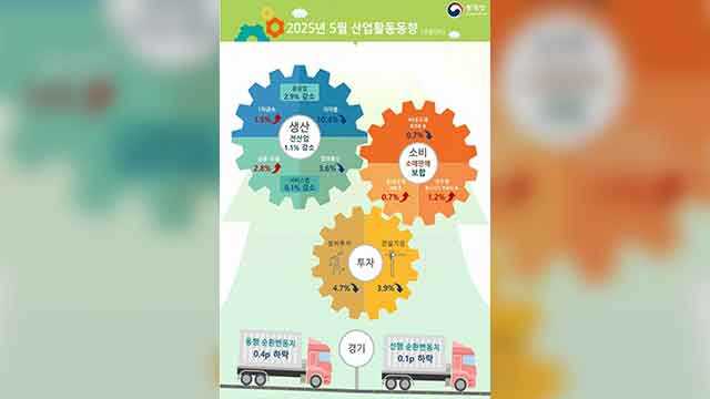 통계청이 오늘(30일) 발표한 2025년 5월 산업활동동향을 보면, 한 달 전과 비교했을 때 소비 증가율 0%였고, 생산은 -1.1%, 설비투자 -4.7%, 건설기성 -3.9%였습니다.