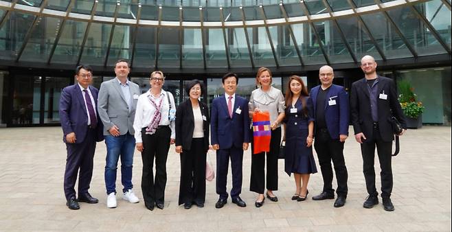 조규일 진주시장을 단장으로 하는 진주시 글로벌 대표단이 현지시간 26일 오전 독일 최대의 주인 노르트라인-베스트팔렌(이하 NRW) 주의회를 방문해 NRW주 전 교육부 장관이자 문화부 정책대변인인 이본 게바우어(Yvonne Gebauer) 의원을 만나 진주실크와 진주남강유등축제 등 진주시의 우수한 문화예술 자원과 진주 K-기업가정신 등을 소개하고 다양한 분야의 협력 및 교류방안에 대해 논의했다.