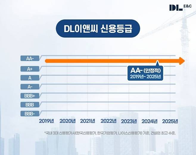 DL이앤씨, 7년 연속 'AA-' 신용등급…건설업계 최고 수준 유지