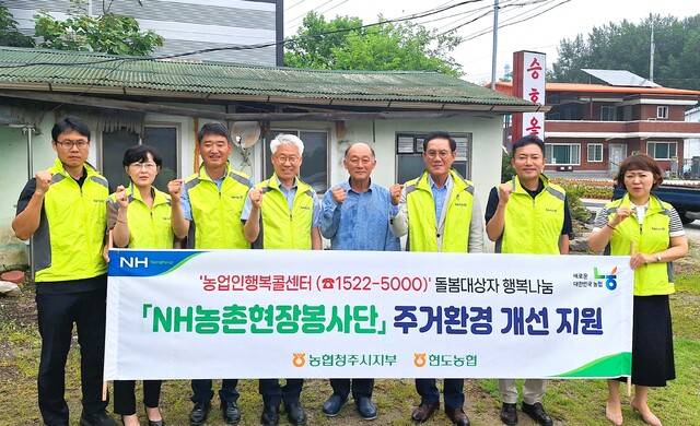 NH농협 충북 청주시지부(지부장 이장환)가 27일 현도농협(조합장 홍성규)과 함께 주거환경 개선 지원사업을 펼쳤다(사진).