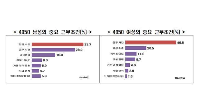 “중장년 재취업시 남성은 임금, 여성은 근무시간 가장 중시”