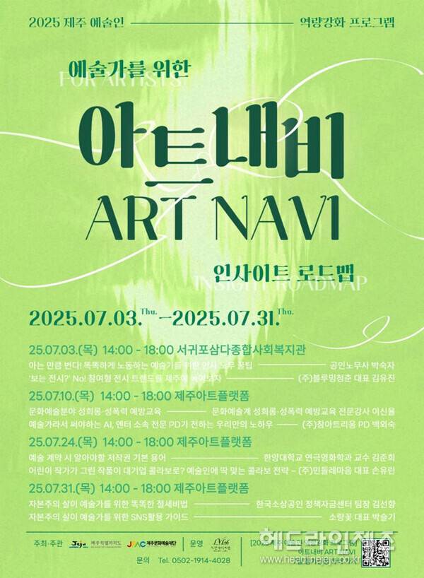 제주문화예술재단(이사장 김석윤, 이하 재단)은 예술인 역량 강화 프로그램 '아트내비(ART NAVI)' 참가자를 모집한다.